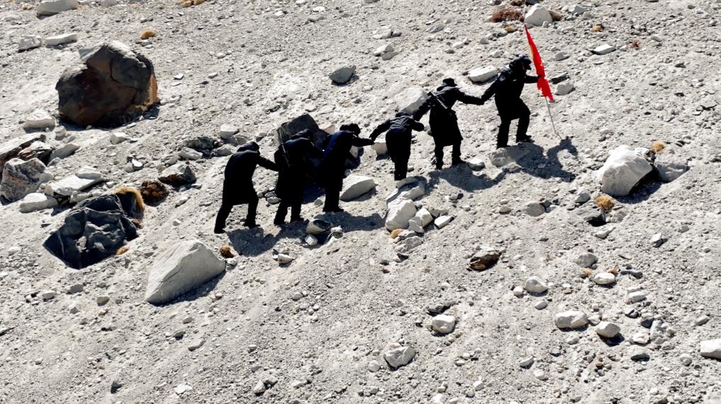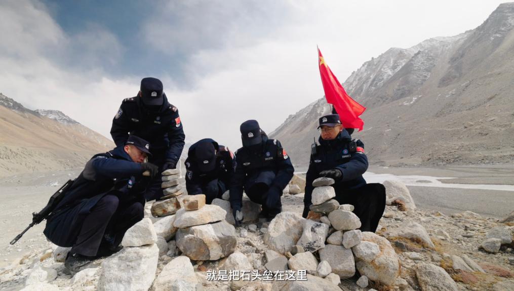 又經(jīng)過4個小時的跋涉,巡邏隊最終抵達本次巡邏的終點。每次到巡邏任務(wù)結(jié)束,都會在這里留下一個小石頭,并許下一個愿望,祝祖國繁榮昌盛,也祝自己心想事成。