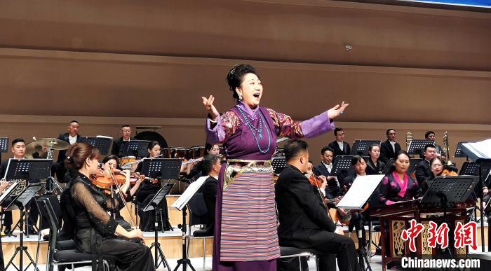 圖為在音樂會上女聲獨唱《我愛你中國》。貢桑拉姆攝