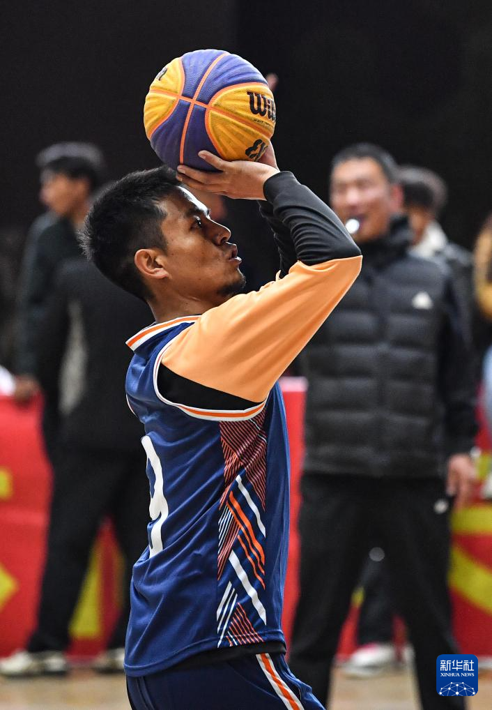 5月10日,西藏廣播電視臺隊球員西熱多久在比賽中投籃。新華社記者 晉美多吉 攝