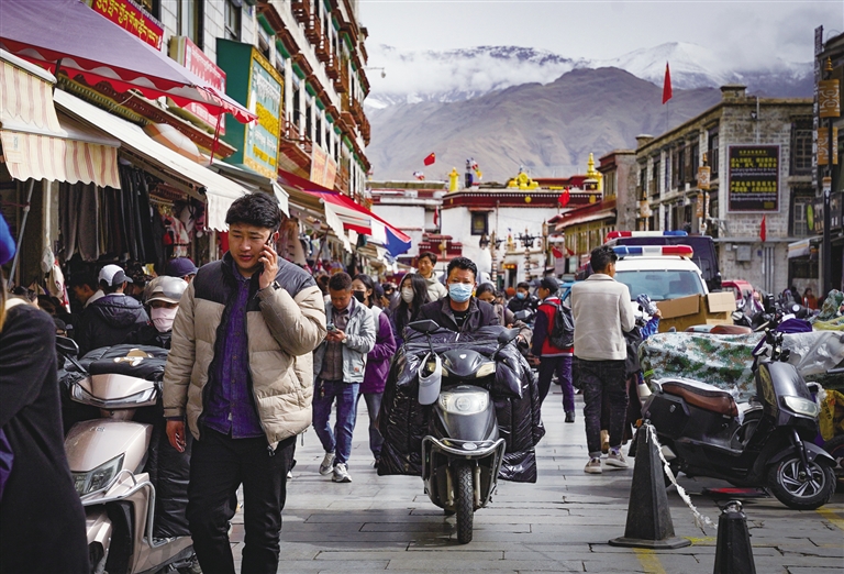 “往年,我的呢子大衣早都束之高閣了。今年,你瞧我還穿在身上呢!有一種冷叫‘拉薩的初夏’!”記者在街頭遇到了拉薩市民卓嘎女士,她調(diào)侃地說。