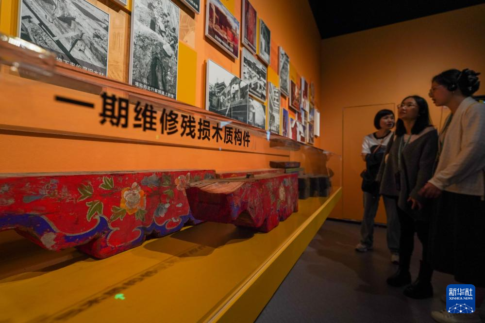 5月11日,觀(guān)眾在展出現(xiàn)場(chǎng)參觀(guān)布達(dá)拉宮一期維修殘損木質(zhì)構(gòu)件。新華社記者 李博 攝