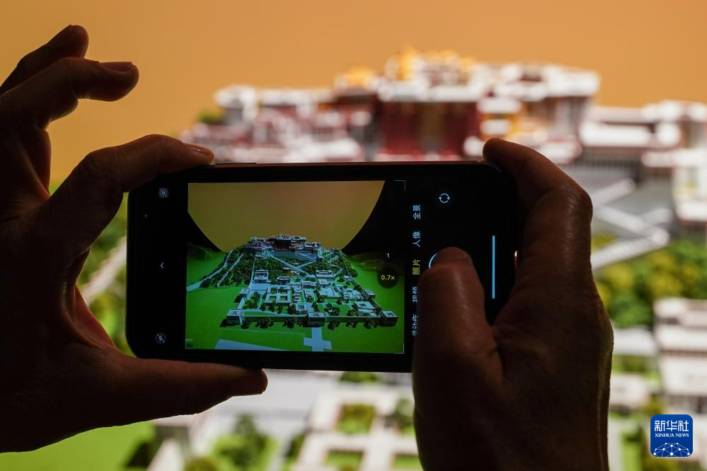 5月11日,觀(guān)眾在展出現(xiàn)場(chǎng)參觀(guān)拍攝布達(dá)拉宮模型。新華社記者 李博 攝