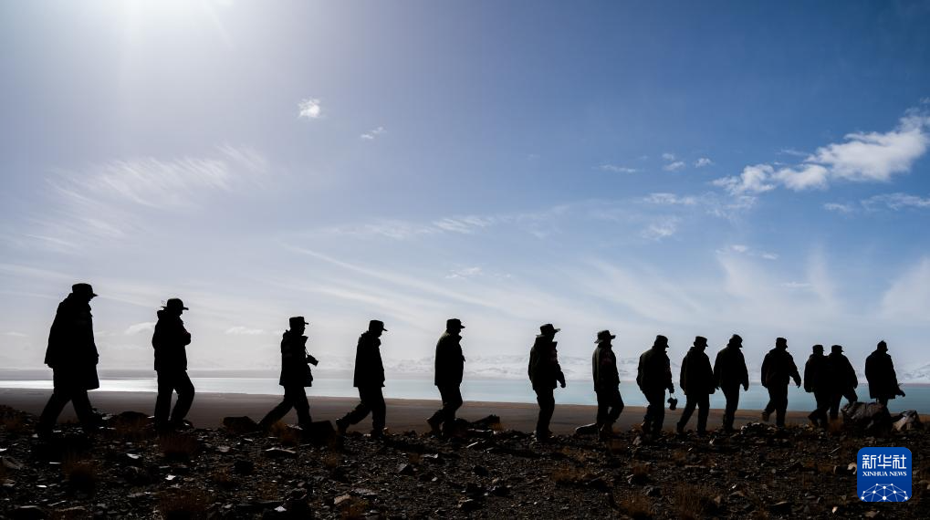 野生動(dòng)物專業(yè)管護(hù)隊(duì)員在榮瑪鄉(xiāng)的依布茶卡湖邊巡護(hù)(5月7日攝)。新華社記者 丁增尼達(dá) 攝