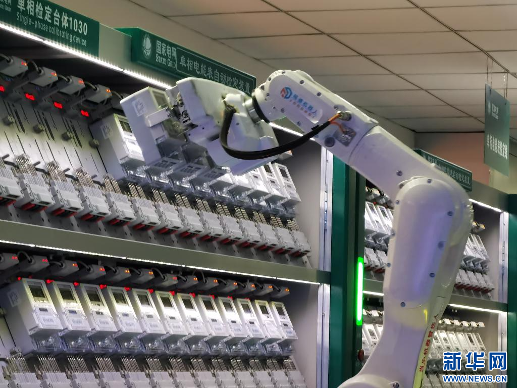 自動化檢定機(jī)器人抓取電能表。新華網(wǎng) 發(fā)(任偉寧 攝)