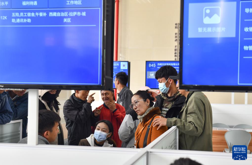 5月24日,求職者在招聘會(huì)現(xiàn)場(chǎng)查看崗位信息。新華社記者 晉美多吉 攝