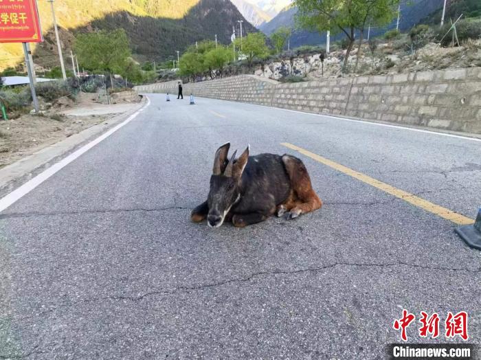 圖為橫臥在219國道的中華鬣羚。張力 攝