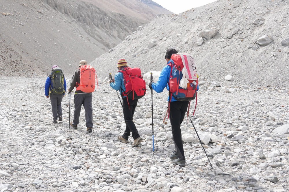 德諾埃爾兄弟和隊(duì)友們一起離開珠峰登山大本營,出發(fā)前往更高海拔的營地(5月18日攝)。新華社記者 丁汀 攝