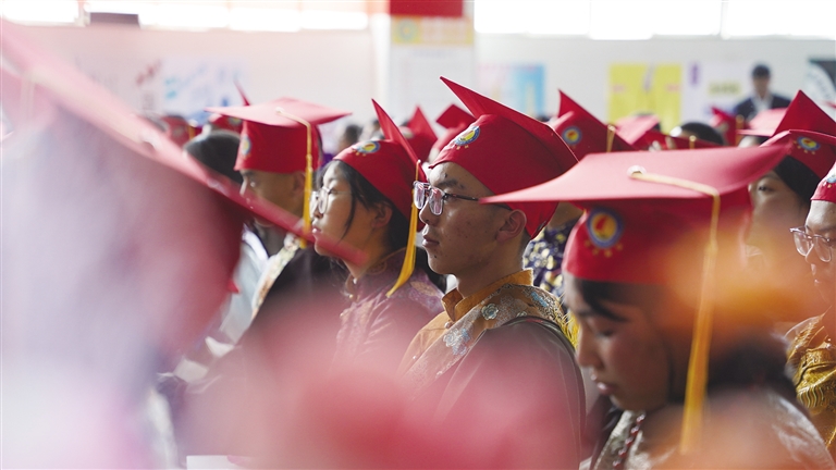 5月29日下午,拉薩市第四高級中學(xué)舉行2024屆高三年級成人禮暨畢業(yè)典禮。750余名學(xué)生身著盛裝,頭戴紅色成人禮帽,與老師、家長共赴這場華麗璀璨的青春盛宴。