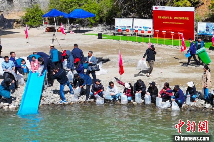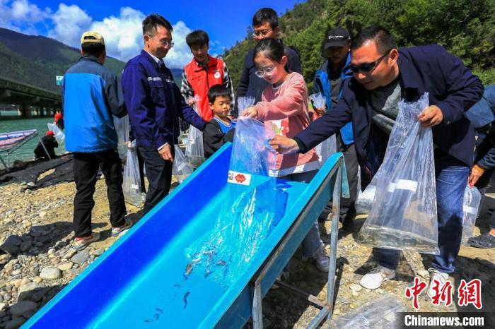 圖為6月6日,西藏林芝尼洋河魚苗放流現(xiàn)場。國家能源集團西藏公司 供圖