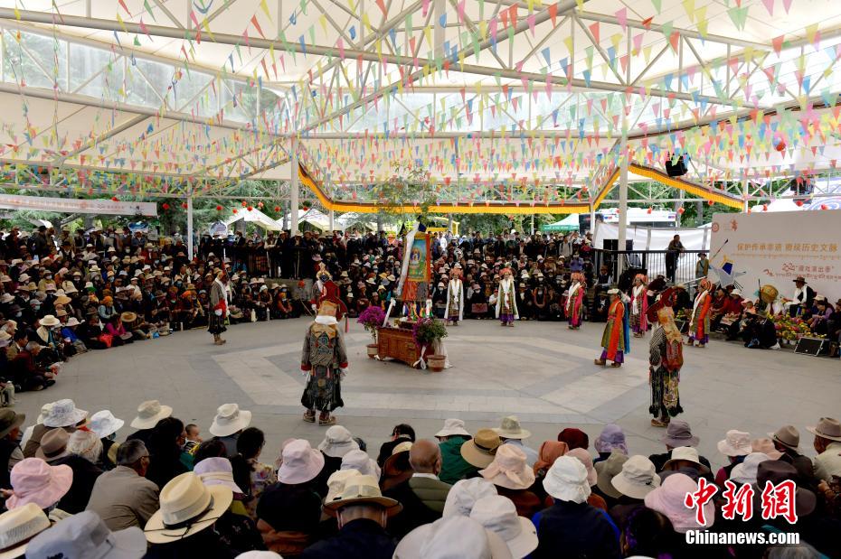 6月12日,藏戲藝人在拉薩市宗角祿康公園表演。從6月9日起,拉薩2024年“藏戲演出季”啟幕。布達(dá)拉宮腳下的宗角祿康公園,5支民間藏戲團(tuán)隊(duì)表演的傳統(tǒng)藏戲劇目,吸引當(dāng)?shù)孛癖姾陀慰颓皝?lái)觀看。李林 攝