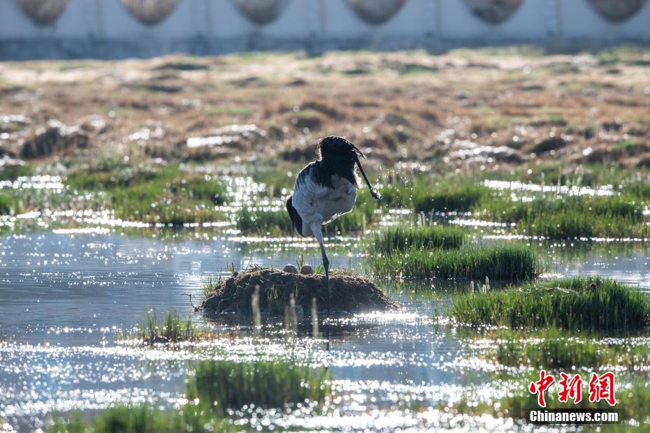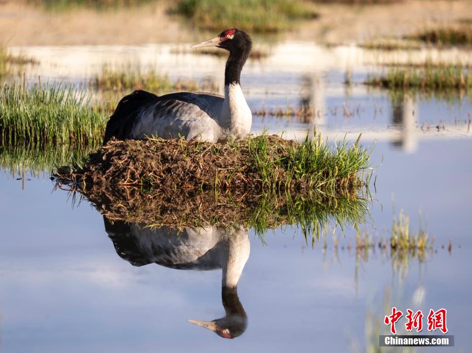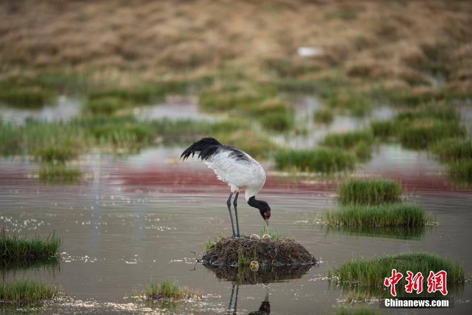 6月12日,西藏那曲市申扎縣濕地里一只黑頸鶴正準(zhǔn)備孵蛋。申扎縣,平均海拔超過4500米,是黑頸鶴在中國的主要繁殖地之一。每年4月到6月,成群的黑頸鶴會來到這里,筑巢、孵化、養(yǎng)育下一代。近年來,為了保護這些珍貴的生靈,申扎縣采取了一系列措施,設(shè)立了監(jiān)測站,對黑頸鶴的棲息地進行24小時監(jiān)控,確保它們的繁殖不受干擾。黑頸鶴是國家一級保護動物,也是世界上唯一一種生長、繁殖在高原的鶴類。貢嘎來松 攝