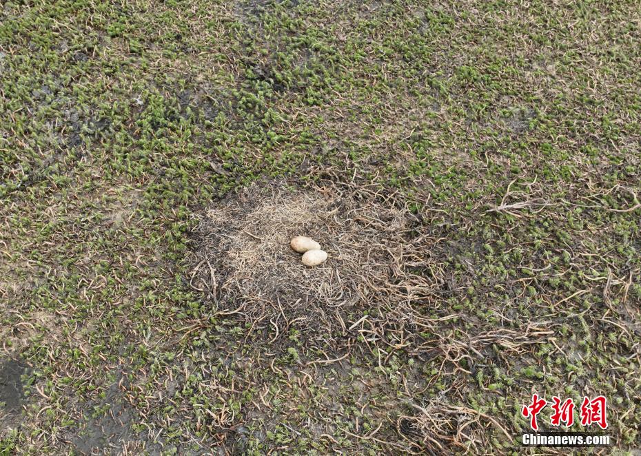 6月12日,西藏那曲市申扎縣濕地里的黑頸鶴蛋。申扎縣,平均海拔超過4500米,是黑頸鶴在中國的主要繁殖地之一。每年4月到6月,成群的黑頸鶴會來到這里,筑巢、孵化、養(yǎng)育下一代。近年來,為了保護這些珍貴的生靈,申扎縣采取了一系列措施,設(shè)立了監(jiān)測站,對黑頸鶴的棲息地進行24小時監(jiān)控,確保它們的繁殖不受干擾。黑頸鶴是國家一級保護動物,也是世界上唯一一種生長、繁殖在高原的鶴類。貢確 攝(無人機照片)
