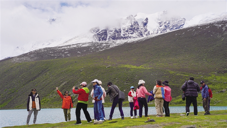 “眼前的景色如此浩瀚,無論我們?nèi)绾闻?,都無法將其完全收入眼底;手中的相機快門不停地按下,卻總感覺無法捕捉到每一處細節(jié)的美麗;社交媒體上的照片和視頻,雖然已經(jīng)分享了無數(shù),但總覺得還有更多美好未能展現(xiàn)。言語在這一刻顯得如此蒼白無力,無法完全傳達我們面對美景時的激動心情?!边@是河南游客張曉明和劉芳夫婦對薩普雪山的贊美。置身于這絕美的畫卷中,一聲聲驚嘆,是他們對大自然鬼斧神工的贊美,也是他們內(nèi)心震撼的真實寫照。