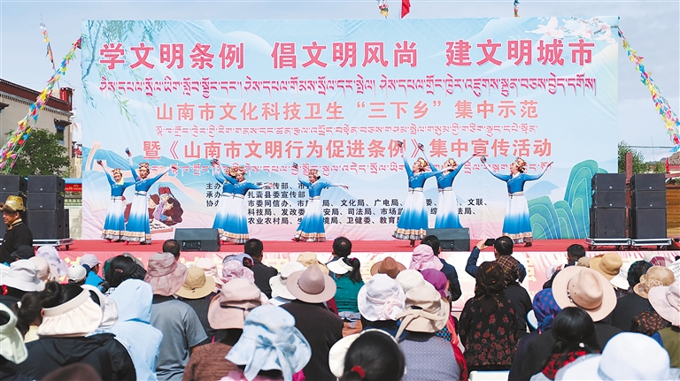 近日,山南市委宣傳部、市文明辦聯(lián)合扎囊縣委宣傳部在扎囊縣阿扎鄉(xiāng)章達(dá)村,開展了以“學(xué)文明條例 倡文明風(fēng)尚 建文明城市”為主題的山南市文化科技衛(wèi)生“三下鄉(xiāng)”集中示范暨《山南市文明行為促進(jìn)條例》集中宣傳活動(dòng)。 圖為活動(dòng)現(xiàn)場。記者 汪純 攝
