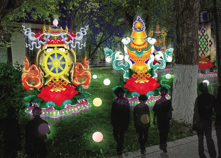記者了解到,“點亮拉薩——秦淮燈會”在宗角祿康公園東門設(shè)置大型燈組,搭配拉薩的吉祥物牦牛、江蘇的吉祥物麋鹿,燈組用拉薩經(jīng)典配色,搭建飄逸的彩帶雙翼,表達(dá)“蘇拉一家親,攜手向未來”的寓意。在公園走廊里、草坪上,還用精致的現(xiàn)代光影作品,安排展示江南煙雨、小橋流水、青磚黛瓦、梅瓶明珠、桃花仙鶴、油傘折扇、上元燈彩等富有江蘇特色的美景雅韻以及具有拉薩特色的建筑和文化精品。