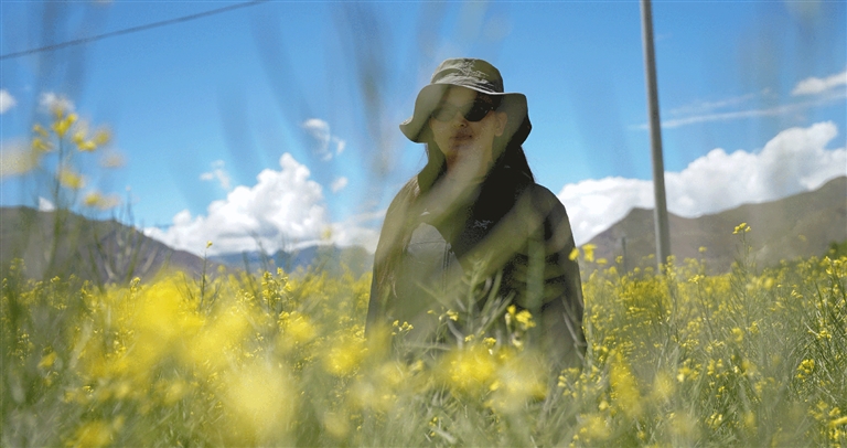 7月初,記者一行驅(qū)車從拉薩出發(fā),在開(kāi)往錯(cuò)那市的路上,經(jīng)過(guò)了瓊結(jié)縣百畝油菜花和隆子縣錯(cuò)落有致的油菜花田。烈日下,油菜花是這片大地的“主角”,是山南市每年盛夏從不缺席的芬芳。一路走來(lái),油菜花肆意地盛開(kāi)在道路兩旁、村莊里、半山腰……微風(fēng)拂過(guò),花朵搖曳生姿綻放著,從稍遠(yuǎn)處看,俗坡奴村錯(cuò)落分布在黃綠交錯(cuò)的田野中,仿若一幅美麗清新的鄉(xiāng)村田野詩(shī)畫。此時(shí),看風(fēng)景的行人紛紛鉆進(jìn)花田中,仿佛是跟油菜花“爭(zhēng)芳斗艷”。