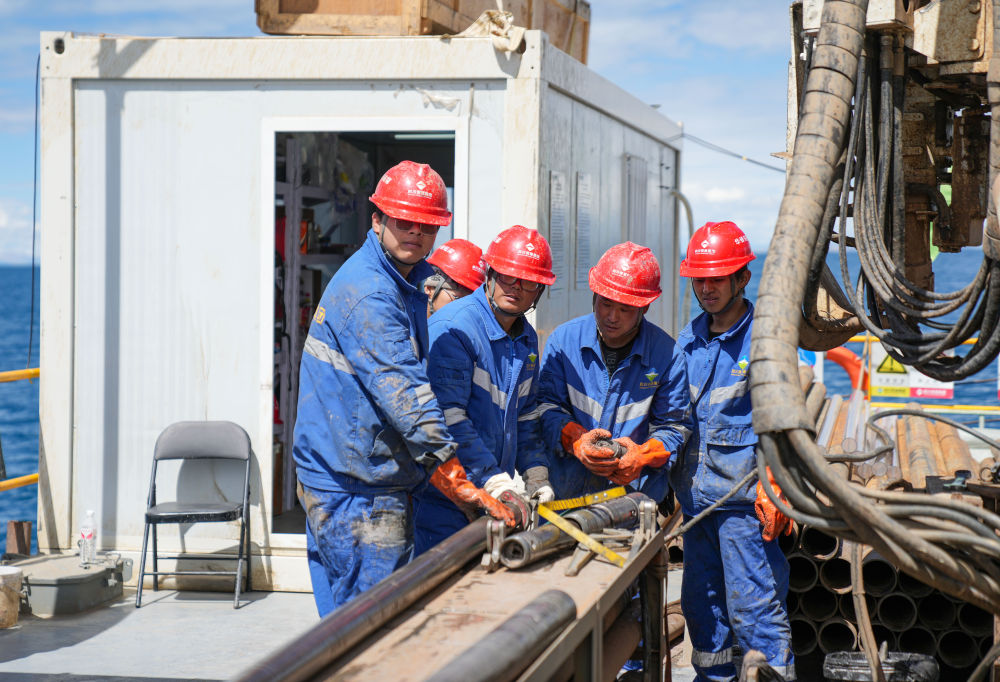 在海拔超過4700米的西藏納木錯中心湖區(qū),21名來自五湖四海的鉆探專業(yè)技術(shù)人員,全天24小時輪班奮戰(zhàn)在面積僅200平方米的水上鉆探平臺上,協(xié)助第二次青藏科考科研人員提取湖泊巖芯樣品,這些樣本如同寶貝一樣,封存著青藏高原納木錯地區(qū)百萬年來的環(huán)境氣候變化信息。 擔任這次湖泊巖芯鉆探任務(wù)的是四川資源集團華鋒鉆探隊。他們從5月31日入駐科考營地、6月6日鉆取第一批湖泊巖芯樣品以來一直奮戰(zhàn)至今。這群平均年齡31歲的鉆探隊員常年工作在高海拔地區(qū),有著豐富的鉆探經(jīng)驗,此次鉆探是他們第一次進行高海拔湖泊鉆探。目前納木錯鉆探深度突破400米,達到國內(nèi)高海拔深水大湖的鉆探新紀錄。這些鉆探隊員在見證奇跡,也在創(chuàng)造歷史。