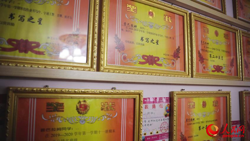 達(dá)瓦堅(jiān)參家墻上的獎狀。人民網(wǎng)記者 趙晨攝