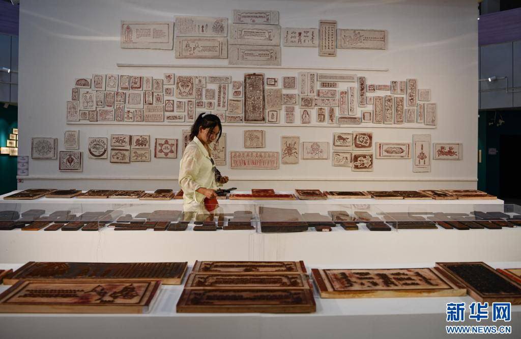 7月19日,工作人員在展示體驗(yàn)區(qū)的雕版及印刷品。