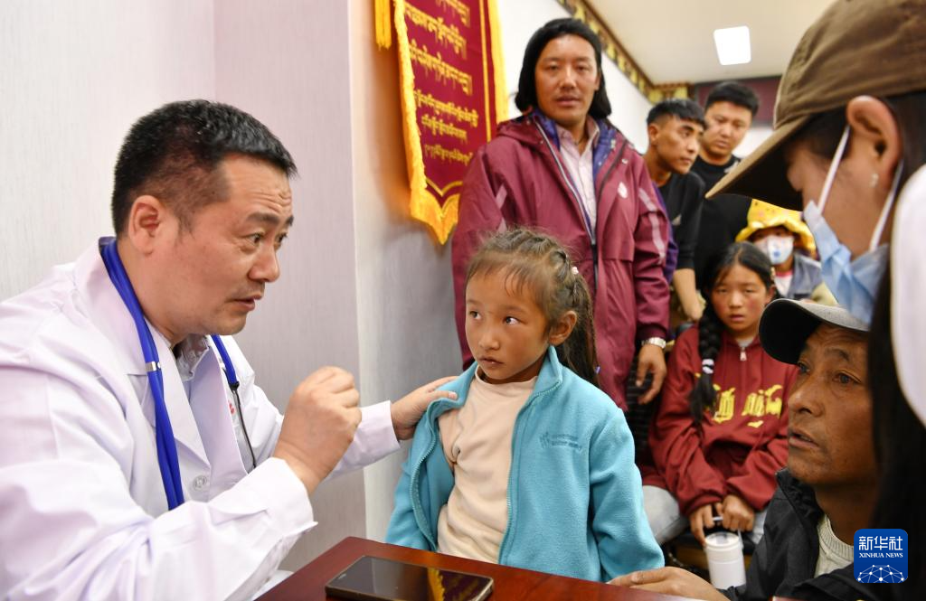 7月23日,南京醫(yī)科大學(xué)附屬兒童醫(yī)院心胸外科主任戚繼榮(左)在墨竹工卡縣為兒童體檢。新華社記者 張汝鋒 攝
