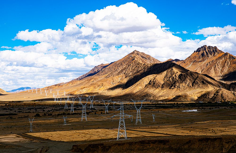 西藏日喀則市拉孜縣連片鐵塔。趙清鵬攝