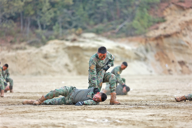 圖為駐藏某部組織格斗訓(xùn)練。武慶振 攝