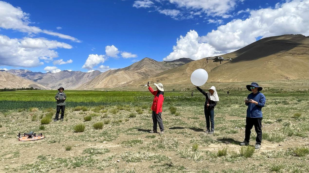 團(tuán)隊(duì)開展探空氣球大氣廓線觀測(cè)和無人機(jī)熱紅外影像獲取。(中國(guó)科學(xué)院空天信息創(chuàng)新研究院供圖)