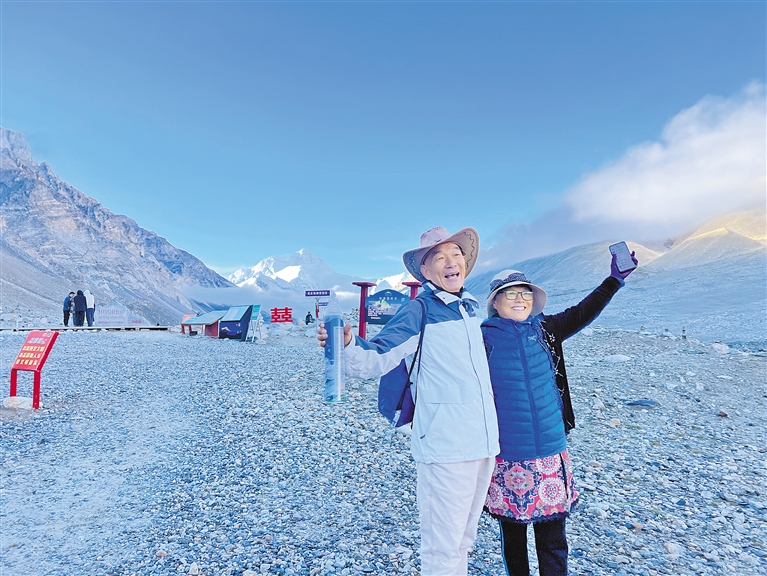 游客觀賞珠峰美景。記者 張姝 攝