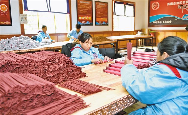 2008年6月,藏香制作技藝被列入國家級非物質(zhì)文化遺產(chǎn)名錄。經(jīng)過多年發(fā)展,藏香已成為西藏自治區(qū)極具發(fā)展?jié)摿Φ奶厣a(chǎn)業(yè)之一,越來越多的藏香加工廠吸納當(dāng)?shù)厝罕娋蜆I(yè),帶動群眾增收致富。