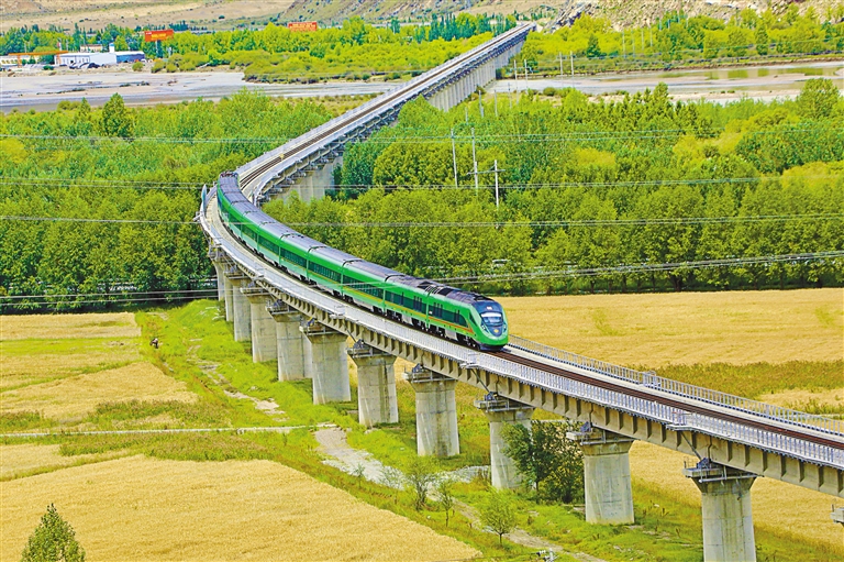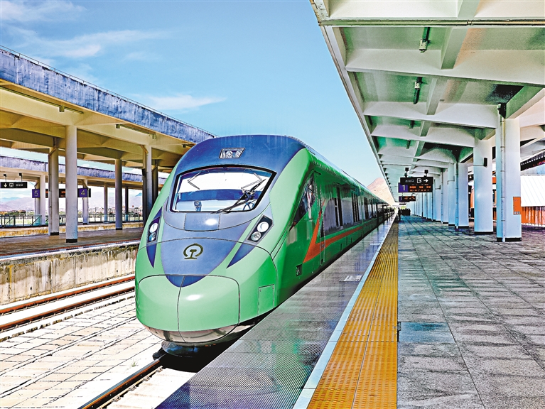 運(yùn)行在拉日鐵路上的復(fù)興號(hào)動(dòng)車組列車。