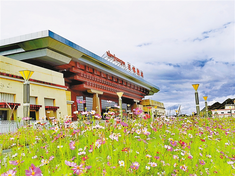 夏天,日喀則站前廣場(chǎng)開滿鮮花。