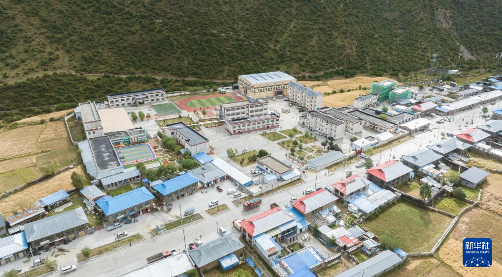 這是無人機拍攝的林芝市工布江達(dá)縣娘蒲鄉(xiāng)中心小學(xué)全貌(無人機照片,9月4日攝)。新華社記者 晉美多吉 攝