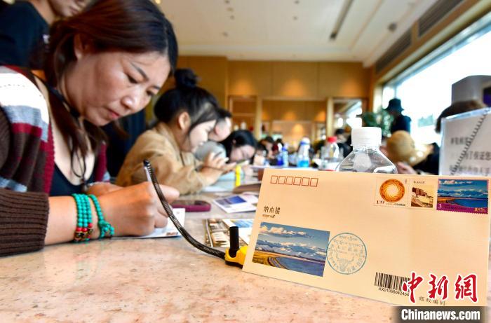 圖為游客在購買《美麗中國(四)》郵票、首日封、紀念封等產(chǎn)品后,現(xiàn)場填寫。李林 攝