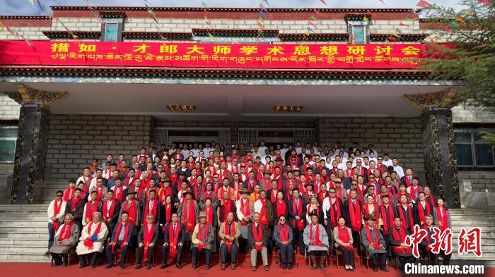 圖為參與藏醫(yī)藥學(xué)家措如·才郎大師學(xué)術(shù)思想研討會的藏醫(yī)藥專家學(xué)者合影留念。謝牧 攝