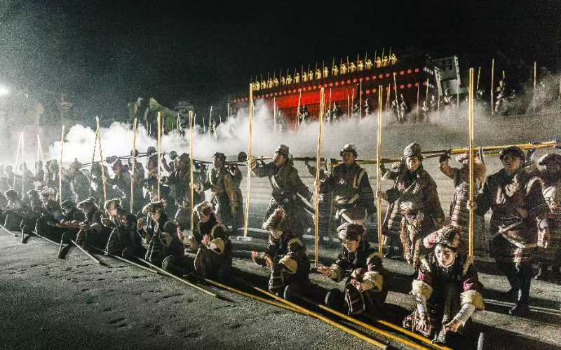 圖為《文成公主》實(shí)景劇演員在表演“打阿嘎”。(受訪者供圖)