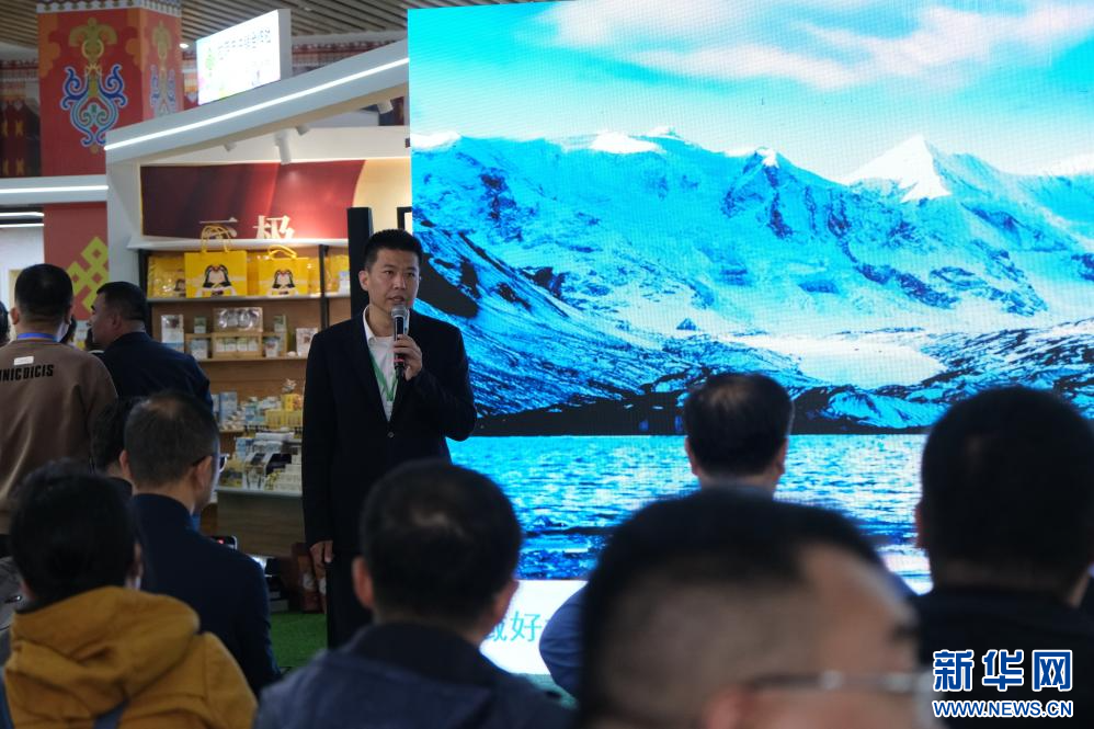 西藏供銷集團相關(guān)負責(zé)人正在向參會企業(yè)推介西藏特色產(chǎn)品。(西藏供銷集團供圖)