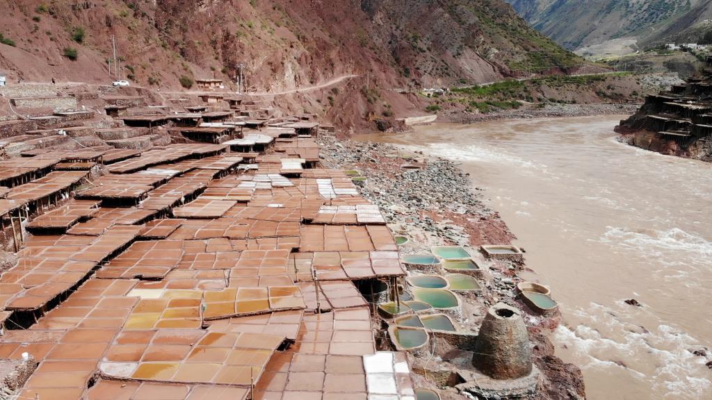 鹽田在瀾滄江兩岸依山而建,由多根木柱搭架,架上用透水性強的泥土鋪成平面夯實。