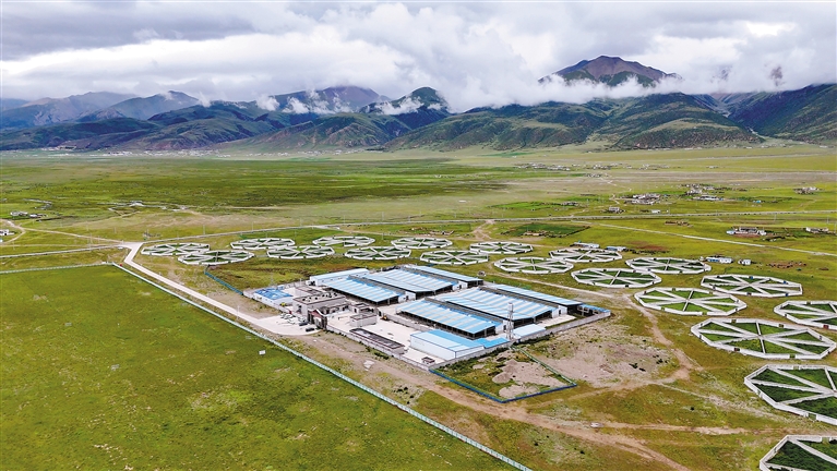 圖為俯瞰拉薩市當(dāng)雄縣龍仁鄉(xiāng)郭慶村牧場(chǎng)。