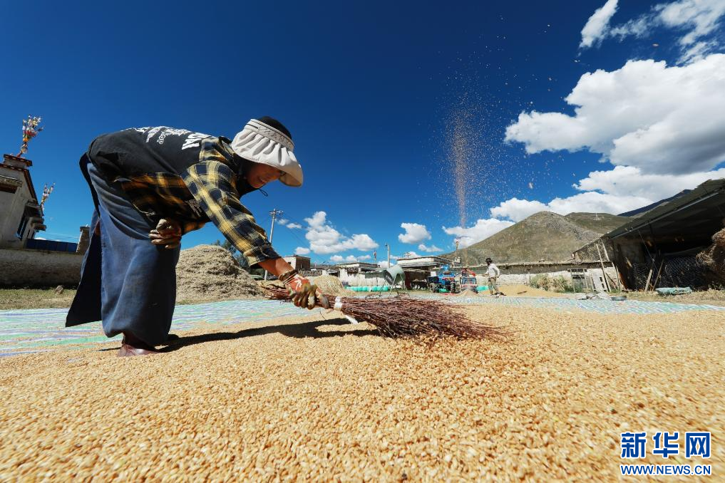 金秋九月,風(fēng)吹麥浪、穗粒飽滿。連日來(lái),在拉薩市墨竹工卡縣金黃色的農(nóng)田里,處處可見勤勞的農(nóng)民們忙碌著,收割小油菜和青稞,晾曬、搬運(yùn)、儲(chǔ)藏,確保糧食顆粒歸倉(cāng)。