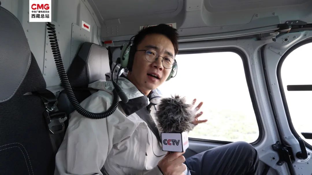 圖為:總臺(tái)記者呂小品乘直升機(jī)鳥(niǎo)瞰新拉薩
