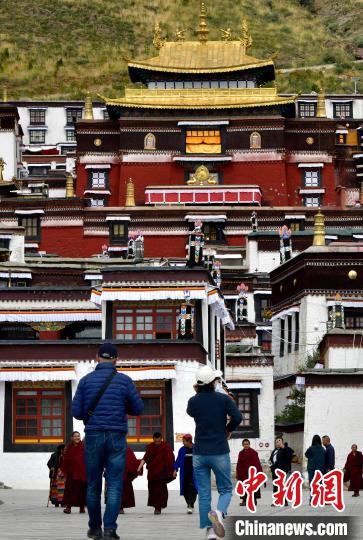 9月以來(lái),西藏自治區(qū)日喀則市旅游熱度不減,始建于公元1447年的扎什倫布寺成為眾多中外游客的首選。圖為9月27日,游客在扎什倫布寺內(nèi)游覽參觀。中新社記者 李林 攝