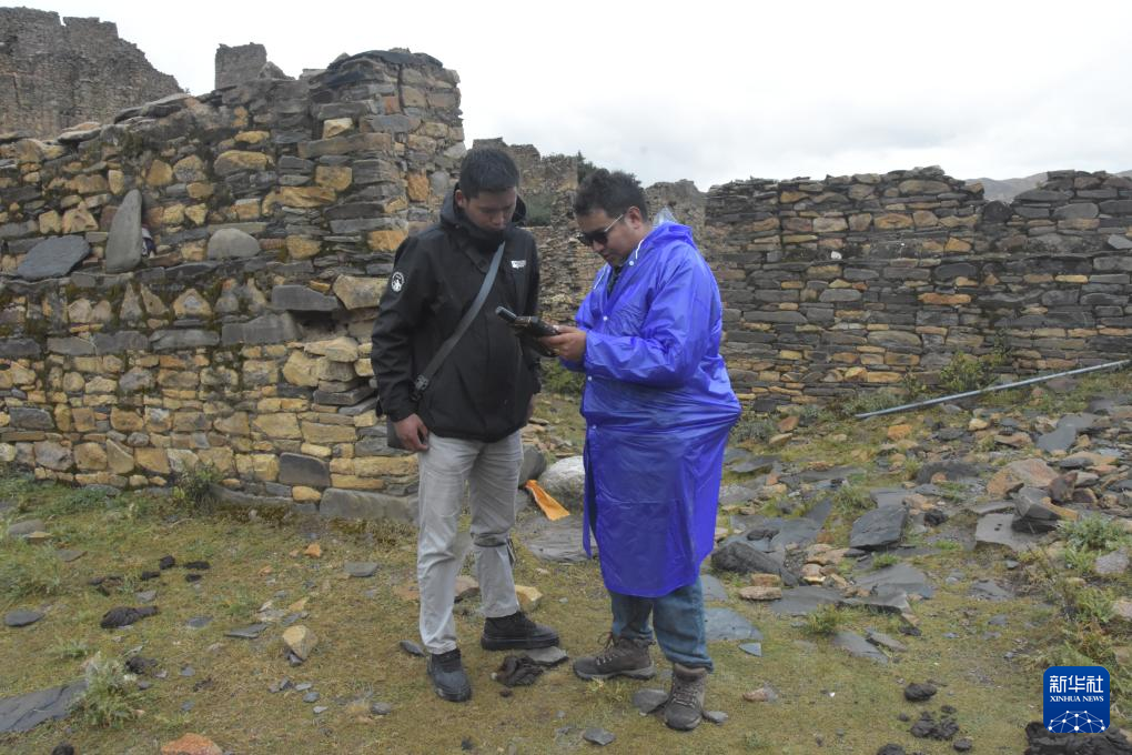 普查隊(duì)員正在采集和復(fù)核日喀則市桑珠孜區(qū)塔巴遺址本體邊界坐標(biāo)及單體范圍。新華社記者 春拉 攝
