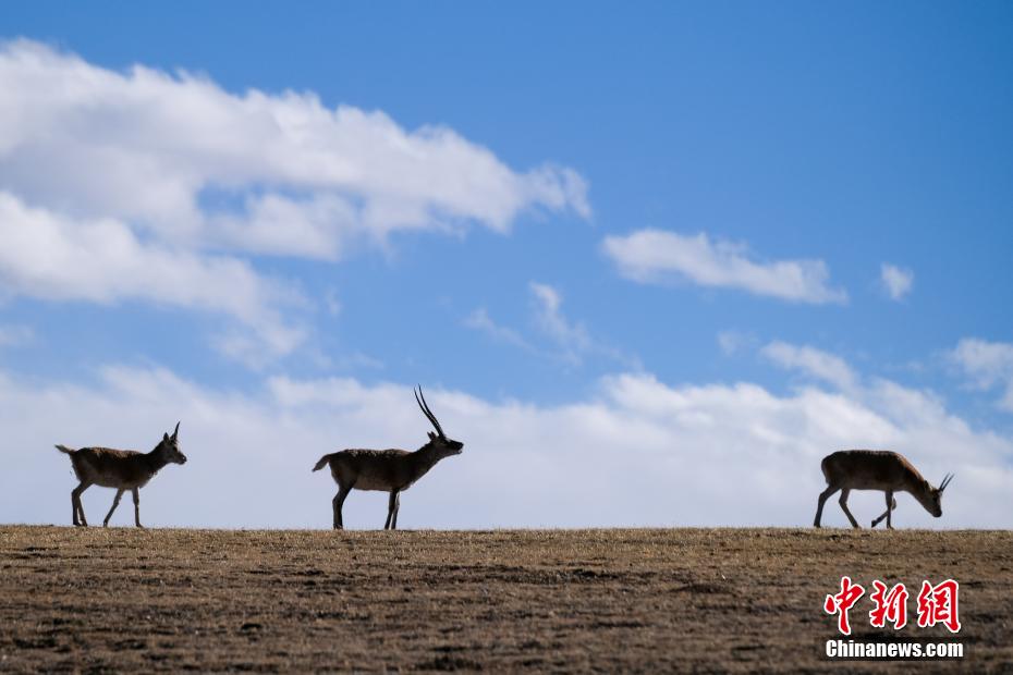 西藏羌塘草原位于昆侖山脈、唐古拉山脈和岡底斯山脈之間,是野生動植物的天堂。近日,中新社記者探訪西藏羌塘草原腹地那曲市雙湖縣,看到當地藏羚羊、藏野驢、藏原羚等野生動物成群覓食,悠然自得。