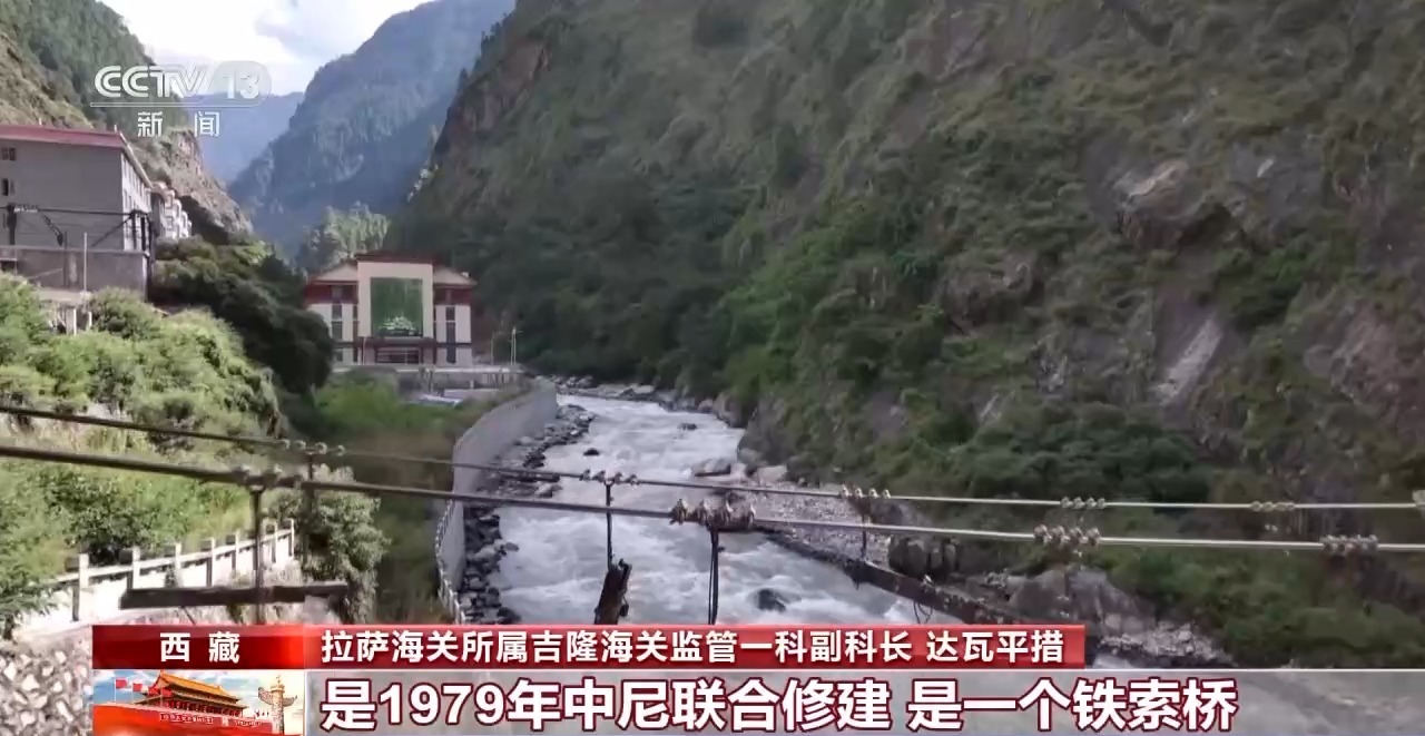 總臺(tái)央視記者 徐平:吉隆口岸是216國(guó)道的終點(diǎn),同時(shí)也是千年古道——蕃尼古道的起點(diǎn)。從歷史上來看,吉隆一直就是西藏對(duì)外友好交往和貿(mào)易通商的重要通道之一,新中國(guó)成立以后,中尼兩國(guó)以吉隆河為界,水面上的四代熱索橋不僅見證了歷史變遷的滄桑,也續(xù)寫著今天的繁榮與活躍。