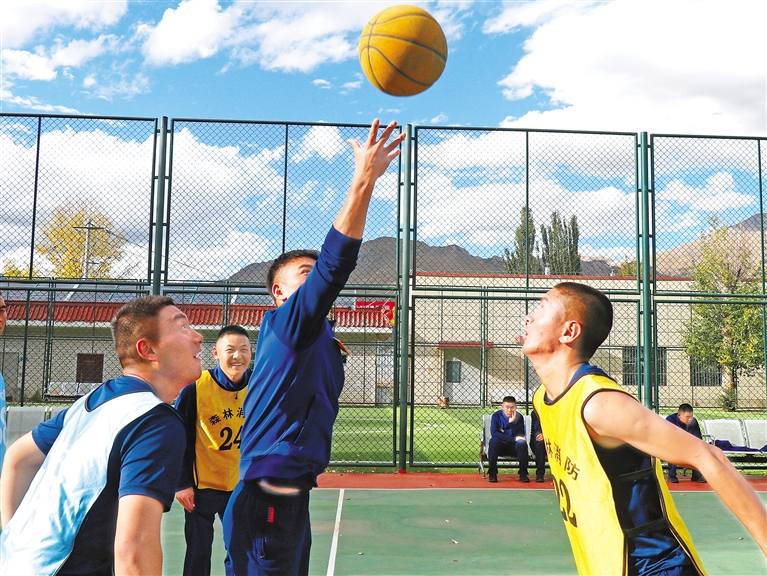 圖為西藏森林消防總隊(duì)新訓(xùn)大隊(duì)開(kāi)展籃球比賽。記者 劉倩茹 攝