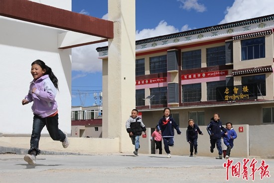 9月14日,西藏那曲市班戈縣第二(中石化)小學(xué),學(xué)生們課間休息時在戶外玩耍。中青報·中青網(wǎng)記者 孔斯琪/攝