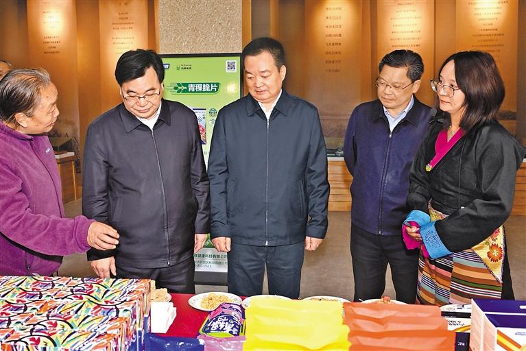 10月16日至17日,甘肅省黨政代表團(tuán)來(lái)藏考察。這是在藏期間,甘肅省黨政代表團(tuán)考察西藏奇正青稞健康科技有限公司,了解高原特色產(chǎn)業(yè)發(fā)展情況。 本報(bào)記者 旦增西旦 攝