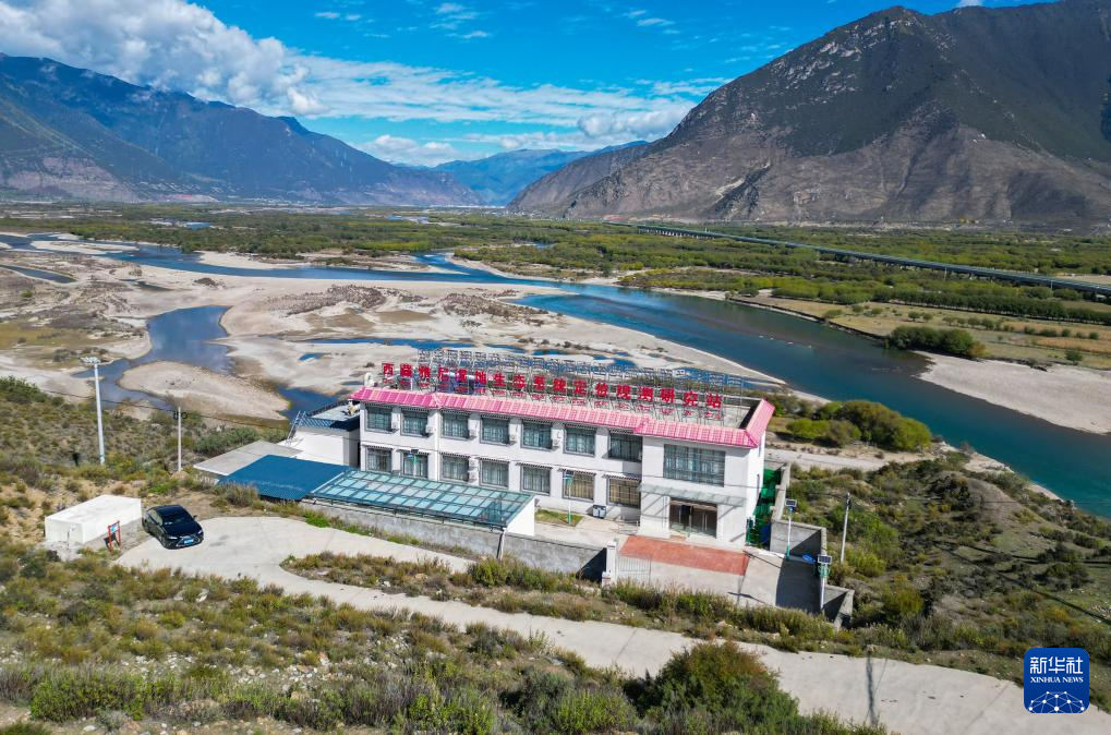 這是在林芝雅尼國家濕地公園尼洋河畔拍攝的生態(tài)監(jiān)測系統(tǒng)(10月24日攝,無人機照片)。新華社記者 劉天宇 攝