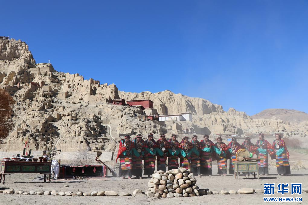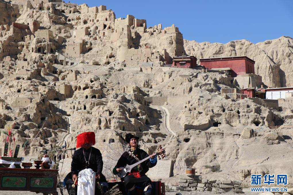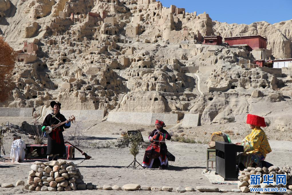 這是11月9日在古格遺址前的演奏現(xiàn)場(chǎng),多名樂手正在合奏西藏傳統(tǒng)音樂。新華社 發(fā)