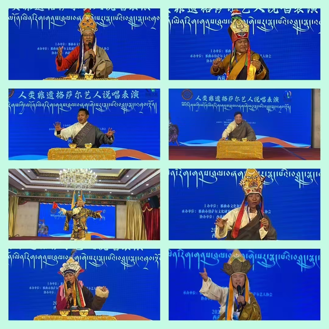 座談會在精彩紛呈的格薩爾說唱表演中拉開帷幕,來自青海省玉樹州、青海省久治縣、西藏阿里噶爾縣以及那曲市的20余名藝人身著傳統(tǒng)服飾,以飽滿的熱情和精湛的技藝共同為與會嘉賓獻上《姜嶺之戰(zhàn)》《霍爾嶺大戰(zhàn)》《賽馬稱王》等格薩爾說唱節(jié)目,充分展現(xiàn)了格薩爾文化的深厚底蘊和獨特魅力。